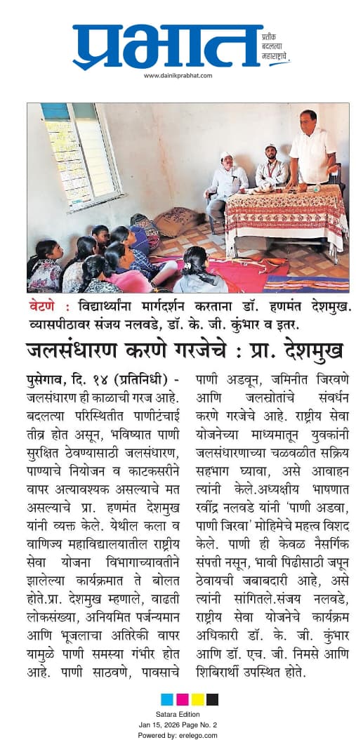 The college was established by Rayat Shikshan Sanstha at Pusegaon on 5th September, 1994 with 77 students in drought prone area of Satara District with the aim of imparting education to socially and economically downtrodden masses. The institution is affiliated to Shivaji University, Kolhapur. It is multi- faculty (Arts and Commerce) institution having 05 departments viz. Marathi, Hindi, English, History and Commerce. Recently the institution has started PG Program in Hindi as per the recommendations of NAAC Peer Team. Today the strength of students is more than 500.The teaching and non teaching staff is well qualified and experienced.